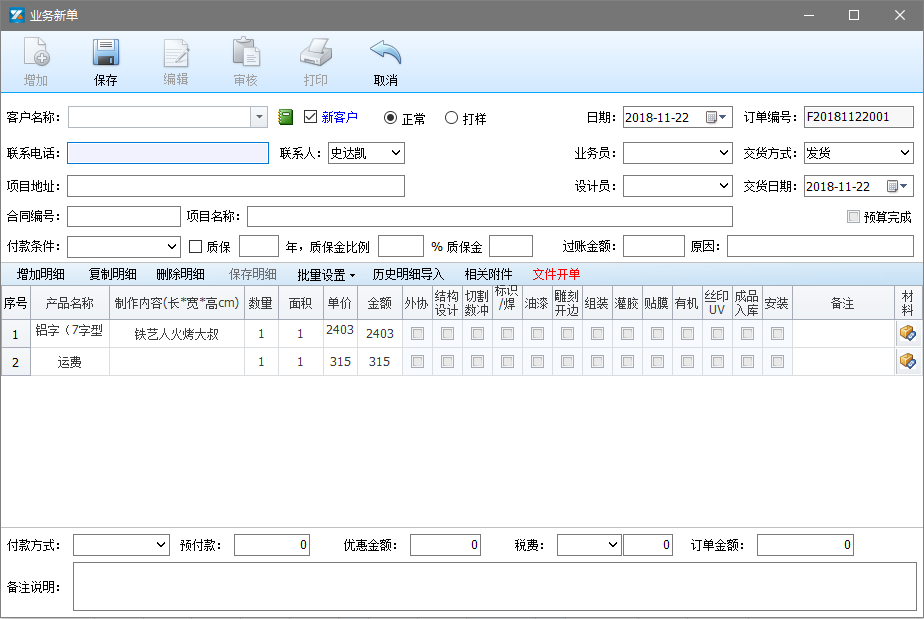 廣告標識標牌ERP管理系統(tǒng),標識業(yè)務記賬登記